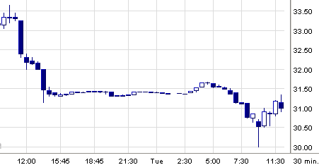 Цены на нефть обрушились в понедельник в Нью-Йорке после того, как министр нефти Кувейта заявил, что в интересах ОПЕК "ради сохранения стабильности" увеличить квоты добычи на 500 тыс. баррелей в сутки. Кроме того, обозреватели говорят о сильных предновогодних мотивах на фиксацию прибыли в связи с окончанием года и подведением бухгалтерских балансов игроков. На Нью-йоркской товарной бирже цены февральскую сырую нефть упали более чем на $3.5, с отметки $ 33.65 до $30.00. К сегодняшнему дню котировки скорректировались к отметки $31.00.
