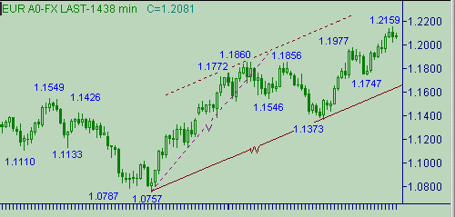 2111, High=1.2159, Low=1.2027, Close= 1.2071.На рис. 1, 2 и 3 приведены графики с периодами день, 480мин., 120мин.