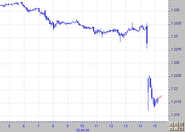 Курс доллара мгновенно вырос более чем на 1 % против ключевых валют после того, как министерство труда США сообщило, что число новых рабочих мест в экономике без учета сельскохозяйственного сектора выросло в марте на 308 000, а рост занятости в феврале пересмотрен до 46 000 с 21 000 человек в феврале. Еще более неожиданным стал пересмотр данных за январь: до 159 000 с 97 000. Аналитики прогнозировали рост числа занятых в марте на 100 000 − 150 000. Прирост числа рабочих мест в марте стал самым существенным за последние четыре года и был отчасти обусловлен возвращением на работу бастовавших работников бакалейных магазинов, а также увеличением числа занятых на строительных работах. Уровень безработицы в марте 2003 года увеличился до 5.7 % с 5.6 % в феврале. Часовая оплата труда выросла на 0.1% , а средняя продолжительность рабочей недели сократилась на 0.1 до 33.7 часа. Сильные данные с рынка труда ждали давно, поскольку темпы роста экономики остаются высокими уже больше года. Безработица традиционно является запаздывающим индикатором, поскольку спрос на рабочую силу начинает расти только тогда, когда доходы компаний уверенно восстанавливаются. Геп между конечным спросом и спросом на рабочую силу был отмечен Гринспеном еще в начале 2003 г. Еще вчера ФРС заявляла, что для нее представляет серьезную проблему слабый рост занятости. Теперь эта проблема не столь остра. Естественным следствием сегодняшних данных является рост ожиданий скорейшего повышения ставки в США, а это непосредственный и долгосрочный позитивный фактор для доллара, поскольку капиталы вновь потекут в Америку. Рост доллара на рынке начался примерно за полминуты до публикации данных. Так заявляют дилеры. Это значит, что кто-то из участников рынка обладал инсайдерской информацией. Курс евро/доллар упал с гэпом с отметки $ 1.2320, где он стоял несколько часов до отчета до нынешних $ 1.2180. На уровне $ 1.2220 активно покупал евро какой-то американский инвестбанк, однако ему не удалось "остановить несущийся на полной скорости поезд". Другим сдерживающим фактором для европейских валют остается спрос на йену против доллара. "Очень сильная и большая неожиданность - эти данные. Они подтвердили ранее появившиеся слухи. Доллар подскочил даже перед данными, так что кто - то, должно быть, знал относительно сильных данных", - говорит Шон Осборн, главный стратег по валютам в Scotia Capital в Торонто. "Это - хорошие новости для экономики США и для доллара США, поскольку они показывают признаки того, что экономика создает рабочие места. Данные усиливают предположение, что Федеральный резерв может увеличить процентные ставки, возможно уже летом", - прокомментировал ситуацию на рынке экономист ECU Group Нейл Макиннон. "Это (сегодняшние данные − прим. PFS) вновь может поднять вопрос о том, как долго Федеральная резервная система намерена сохранять ставку на минимальном уровне с 1958 года", - считает ведущий экономист BMO Nebsitt Burns Рассел Шелдон. Сейчас ставка ФРС находится на 45-летнем минимуме в 1.0 % годовых.