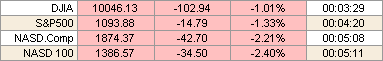 Сотовая компания Nextel Communications Inc. охотно способствовала погружению Nasdaq в отрицательную зону. Причиной тому стало беспокойство инвесторов относительно увеличения ставки налогового обложения компании в этом году. Акции Nextel упали на 6.78% до отметки 24.46. Более сильное давление на Nasdaq оказали неутешительных отчеты о доходах компаний Invitrogen Corp. и Mercury Interactive Corp. Invitrogen понизил свои годовые перспективы доходов в связи с усилением конкурентной борьбы, что и вызвало обвальное падение акций на 21% до 52.08, не смотря на то, что ежеквартальная прибыль компании выросла. Mercury, чье программное обеспечение предназначено для тестирования и повышения эффективности технологий компаний, регистрировал свой доход во втором квартале ниже прогнозов аналитиков. Также компания предсказывает, что чистая прибыль текущей четверти также может оказаться ниже прогнозов Wall Street. Бумаги Mercury потеряли в стоимости 13%, упав до 37.21.Акции Motorola Inc. понизились на 7% до 15.00. Помимо публикации отчета о доходах, компания сообщила о том, что конкурентная борьба становится все более и более жесткой, что и заставило инвесторов усомниться в продолжение роста прибылей компании. "Мы полагаем, что бумаги Motorola уже достигли пиковой стоимости", - говорят аналитики компании Bernstein & Co.