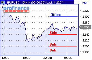 Евро/доллар на торгах в Токио предпринял попытку продолжения нисходящего движения под давлением продаж японских банков в паре "австралиец"/доллар и кроссе евро/йена. Однако объемы были очень низкими, по этому евро смогла опуститься немногим ниже 1.2250, при этом, поглотив пару установленных стопов, однако протестировать биды на 1.2240 не удалось. В результате летаргической торговли курс вернулся к 1.2260. Серия бидов отмечена дилерами на 1.2240, 1.2200 и 1.2180. Офера стоят на 1.2300 и 1.2340.