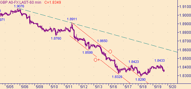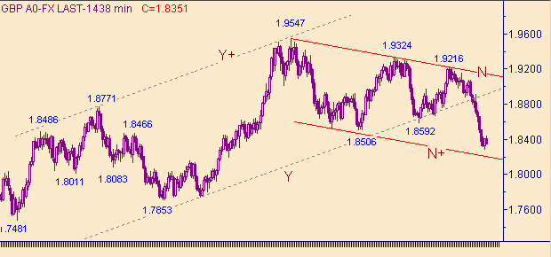 Качественных изменений не произошло. По-прежнему текущую ситуацию определяем как формирование коррекционной формации. Похожая картину наблюдаем на графиках как и для пары евро/доллар. Для рассматриваемой пары валют , в случае продолжения осваивания полупространства выше уровня 1.8280, будем рассматривать коррекционную формацию уже от более крупной нисходящей структуры. Т.е. предполагаем, что коррекция от нисходящего движения в канале O-O+ на рис. 3 закончилось. Целевую область в случае продолжения коррекции рассматриваем в интервале 1.8600-1.8650. Расширенный список целевых уровней: 1.8430, 1.8515, 1.8540, 1.8680, 1.8775.