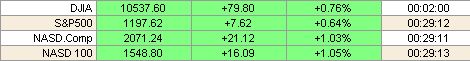 Пересмотренные данные по экономическому росту США в первом квартале оказали благоприятное влияние на участников фондового рынка США, поскольку экономическая экспансия увеличивается теми темпами, которые не вызывают повышенных инфляционных беспокойств. На этом фоне американские акции продемонстрировали позитивную динамику, а все основные индексы закрылись в зеленой зоне. По секторам можно выделить рост акций строительных компаний, где активную поддержку оказала компания Toll Brothers Inc., которая в своем квартальном отчете сообщила об увеличении прибыли больше, чем в два раза, а также повысила прогнозы своих доходов на текущий год. Акции Toll Brothers выросли на 6.91% до 91.65. Бумаги некоторых конкурентов этой компании также прибавили в стоимости. Так акции Hovnanian Enterprises Inc. поднялись на 5.19% до 61.38, бумаги Beazer Homes выросли на 5.24% до 53.85. Далее стоит отметить технологический сектор. Акции Apple Computer Inc. выросли на 2.24% до 40.67. Бумаги крупнейшего мирового производителя компьютерных микропроцессоров Intel прибавили в стоимости 1.19% процент, поднявшись до 27.32. Чувствительные к состоянию экономик бумаги промышленных компаний в четверг также активно пользовались спросом среди инвесторов. Акции компонента индекса Dow, компании Caterpillar Inc. выросли на 1.61% до 93.95. Акции компании Boeing Co. выросли на 2.51% до 62.99. Крупнейший авиастроитель США в среду подписал контракт с Indonesian airline о продаже самолетов на сумму 3.9 млрд. долларов. Стоимость нефтяных фьючерсов на light sweet с поставкой в июле, торгуемых на NYMEX, снизилась на 8 центов до 50.90 долларов за баррель.