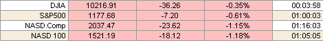 Инфляционные беспойкойства оказали давление на обыкновенные акции, в то время как доходность 10-летних казначейских облигаций оказалась на самом низком уровне с начала августа. Комментарии представителя Федерального Резерва Сьюзен Бис, которые прозвучали на конвенции банкиров в Беверли Хилз оказали негативное влияние на акции ипотечных компаний, поскольку они содержали предупреждения о рисках в предоставлении ипотечных кредитов, что может быть вызвано повышением процентной ставки или падением цен на рынке недвижимости. Акции MGIC Investment Corp. упали на 1.9% до 58.55. Индекс Dow Jones для строительных компаний упал на 1.5% о 844.89 пунктов. Дополительное давление на настроения инвесторов оказали и цены на нефть, которые по итогам завершения регулярной сессии на NYMEX выросли до уровня 64.12 долларов за баррель (light sweet, ноябрьский контракт).