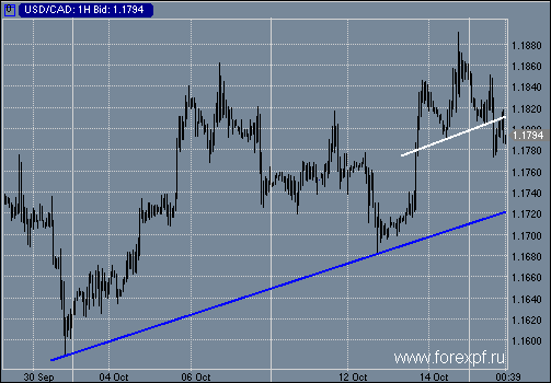 Канадский доллар укрепил свои позиции на торгах в понедельник против американской валюты. Цены на нефть оказали ключевую поддержку loonie на фоне опасений, в связи с приближающемся к побережью Мексиканского залива США новым штормом. Помимо ситуации с мировыми ценами на нефть, канадскому доллару оказывали поддержку позитивные ожидания в отношении повышения процентной ставки на сегодняшнем заседании Банка Канады. Экономисты прогнозируют очередное повышение до 3 процентов годовых. Решение будет опубликовано во вторник в 17:00 мск. Однако в большей степени игроки в паре долларканада ожидают не сам факт решения заседания, который практически заложен в текущие цены, а инструкцию комитета по валютной политике, которая должна пролить свет на дальнейшие шаги BOC в рамках изменения монетарной политики. Мы не ожидаем существенной реакции на сегодняшнее объявление решения по ставкам, полагая, что на этой недели более важным для валютного рынка событием станет полугодовой отчет по валютной политике BOC, который будет представлен вниманию участников рынка в четверг. На прошлой неделе в своих комментариях от 12 октября мы указывали на сохранение в паре диапазона между 1.1700 и 1.1900. Теперь уже окидывая взглядом прошедшие события можно утверждать, что названному нами диапазону удалось сдержать недельную волатильность в данной паре. Краткосрочная техническая перспектива позитивна для канадской валюты, однако в своих среднесрочных рекомендациях мы продолжаем занимать свою давно озвученную позицию: пока уровень 1.1600 не будет пробит, лонги в канадской валюте в среднесрочной перспективе являются опасным торговым решением. При этом признаков разворота в данной паре мы также не имеем, поэтому не видим среднесрочных лонгов по доллару против loonie. Как на прошлой, так и на наступившей неделе в данной паре будут интересны лишь краткосрочные спекулятивные решение. С учетом того, что на графике часового временного интервала мы можем наблюдать такую фигуру классического технического анализа, как "голова и плечи", мы имеем позитивные настроения в отношении канадской валюты в краткосрочной перспективе, ожидая тестирования области отметки 1.1720, которая представляет собой текущее значение трендовой линии, построенной от минимумов на 30 сентября. ProFinance.Ru - Forex News / Новости Форекс