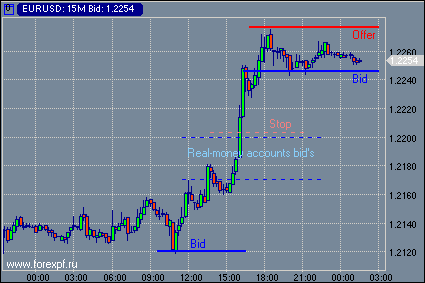 Курс евро/доллар регистрировал минимумы во вторник в области 1.2120, что можно было наблюдать в начале европейской сессии. Тем не менее, единая валюта сохранила импульс роста и к началу американских торгов пробила технический уровень 1.2150. Ключевой спрос в паре евро/доллар присутствовал со стороны real-money accounts. Именно он вызвал продолжение роста до фигуры 1.2200. Офера на этом уровне были существенны по объему, однако поддержку продолжению дальнейшему росту оказало поглощение стопов в паре доллар/франк. Вслед за этим выше 1.2205 началось поглощение стопов в евро/долларе, что подбросило евро до 1.2225. Выше на 1.2250 также были крупные офера, но после поглощения стопов выше 1.2205 офера на 1.2250 стали сниматься продавцами, что значительно увеличило оптимизм покупателей единой валюты. Уровень 1.2250 был опробован, но должного сопротивления, действительно, не было оказано. В результате пара поднялась в область 1.2275, где уже продажи европейских корпораций закрыли верхнюю сторону. Далее последовала незначительная коррекция в область 1.2250, где курс и продолжает консолидацию в настоящий момент. ProFinance.Ru - Forex News / Новости Форекс