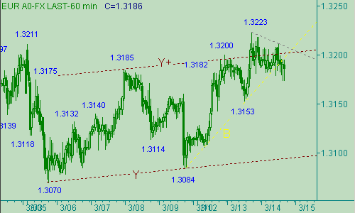 С пятницы по вторник, включительно, евро/доллар сформировал симпатичный восходящий тренд 1.3084(9/03/07)-1.3223(13/03/07) длиной 139п. Сегодня у пары ответственный день, когда она пробивается ниже линии тренда этого движения, обозначенная на рис. 1 линией B. Само это up-движение является второй восходящей веткой в росте курса вдоль линии Y на рис. 2, которое мы, в свою очередь, рассматриваем как вторую часть коррекционной формации от подъема пары 1.2911(6/02/07)-1.3259(27/02/07). На сегодня нам важен уровень поддержки 1.3150, пока евро остается выше этой отметки у него сохраняется шанс для теста области 1.3250/1.3255.