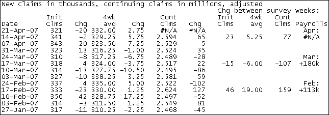 Отчет Министерства труда США по заявкам на получение пособий по безработице показал, что их число, по данным на 21 апреля, сократилось на 20 000 и составило 321 000 вместе ожидавшихся 329 000. Между тем, данные за предыдущую неделю были пересмотрены до 341 000 с 339 000 неделей ранее, в результате чего среднее число требований за четыре недели выросло на 2 750 до 332 000. Без учета сезонных колебаний, число заявок на получение пособия упало на 17 072 до 300 511. Общее число безработных, тем временем, на 14 апреля выросло на 65 000 до 2.594 млн. ProFinance.Ru - Forex News / Новости Форекс