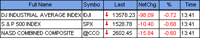 Американские фондовые индексы во вторник оказались в красной зоне, учитывая, что заявления главы ФРС Бена Бернанке относительно экономики и инфляции были негативно расценены участниками, надежды которых на снижение ставки в этом году ослабли. Вместе с тем, по словам аналитиков, некоторые инвесторы фиксируют прибыль, опасаясь, что ралли могло зайти слишком далеко. Слова Бернанке относительно того, что коррекция рынка жилья продолжиться дольше нежели ожидалось отрицательно сказалось на бумагах строительных компаний и компаний недвижимости. Так акции Toll Brithers упали на 0.69% и в настоящее время торгуются на NYSE по цене $28.84, в то время как бумаги D.R. Horton Inc. подешевели на 1.72% до $22.88, а бумаги Home Depot Inc. упали на 2.34% до $38.87. Бумаги компаний, чувствительным к изменению процентных ставок также демонстрируют негативную динамику, в частности акции Edison International упали сегодня на 2.13% до $57.32.