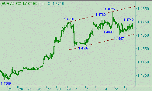 19:20 Qosmio: Евгений Романов, TeleTRADE - теперича еврость. Свежая еврость интереса не вызывает, туды ее в качель. Старые лонги, развешанные от 1,4730 и усредненные от вашингтонского гэпа 1,4332-4294, если еще не зафиксированы, можно подержать до тех пор, пока стоит дневная поддержка, но об какой именно поддержке речь – посмотрим чуть позже. А пока, на недельном графике, есть пара абсолютно равновероятных технических сценариев. Во-1, ре-тест медианы (А), а это прямо под 1,51 usd. Если оценивать психологические вероятности, то именно такой сценарий и просится. Но для свежих покупок в сторону 1,51 я не вижу технических грамотных возможностей. Авантюра, но она чувствуется, интуиция предупреждает меня не продавать евру здесь и сейчас. Слишком заурядными выглядят цены, даже на уровне 1,4750, и даже в зоне 1,4914-67. Во-2, второй пик можно считать сделанным. Здесь вам и долгосрочная медиана (черная), и здесь те самые полтора цента от прошлого рекорда 1,4967. Но я - не верю! Может быть, и напрасно, но усреднять позиции сентября, с целями 1,37, я полагаю, раньше зоны 1,50-51 нельзя! Ну, в самом деле, в Америке каркают рецессию, которой еще свет не видел (Джим Роджерс). ФРС может еще ставки срезать, и еще не факт, что дело обойдется 25-ю базисными. Берданка – еще тот типус. Нефть попробовала крови выше $100, и ре-тест выглядит неминуемым. А если пролезет туда и зацепится, то уже сегодня идут разговоры про $200. Ну, как можно на таком фоне продавать еврость? По такой цене, как 1,47??