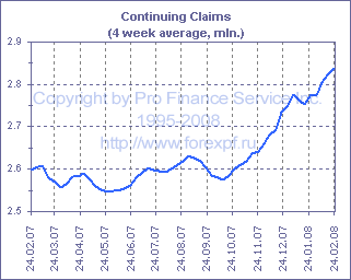 Число новых заявок на получение пособий по безработице, согласно отчету, департаменту труда США, в неделю до 1 марта сократилось на 24 000 до 351 000, что оказалось несколько лучше прогнозов аналитиков, ожидавших снижения до 360 000. Между тем, данные за предыдущую неделю были пересмотрены с 373 000 до 375 000, в результате чего среднее за четыре недели число новых заявок сократилось на 1 500 до 359 500. Тем временем, общее число лиц, получающих пособие по безработице (прим. ProFinance.ru: continuing claims), продолжило расти и в неделю до 23 февраля достигло 2.831 млн., поднявшись на 29 000 с 2.802 млн. неделей ранее, что является максимальным уровнем с 24 сентября 2005 года. Несмотря на некоторое снижение числа новых заявок, общее впечатление от отчета остается негативным, учитывая сохраняющуюся тенденцию к росту четырехнедельных значений как новых заявок, так и числа тех, по которым продолжают выплачиваться пособия по безработице. Экономисты HFE, между тем, также рекомендуют обратить внимание на то, что менее волатильный показатель - среднее число заявок за восемь недель - также сохраняет тенденцию к росту. ProFinance.Ru - Forex News / Новости Форекс