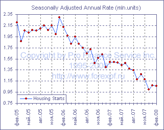 Число новых строительств в США в феврале упало на 0.6% м/м и составило 1.065 млн., что, однако, оказалось лучше среднего прогноза аналитиков, ожидавших падения до 1.000 млн. Между тем, данные за январь были пересмотрены в сторону повышения, в результате чего в этом месяце число новых строительств составило 1.071 млн., а не 1.048 млн., как считалось ранее. Согласно отчету, число новых строительств односемейных домов в феврале сократилось на 6.7% до 707 000, что стало минимальным значением с января 1991 года, однако число строительств многоквартирных объектов выросло на 14.4% и составило 358 000, хотя стоит отметить, что динамика показателя носит довольно волатильный характер (-43.6% в январе и +39.8% в декабре). Сокращение новых строительств было зафиксировано на северо-востоке США, где оно составило 27.7%, тогда как на среднем западе изменений не наблюдалось, а на юге и западе был отмечено рост на 3.9% и 5.1% соответственно. Тем временем, число разрешений на строительство в феврале, упало на 7.8% до минимального уровня с сентября 1991 года в 978 000 (прим. ProFinance.ru: максимальное падение за последние 13 лет и девятое падение подряд), отражая давление существующих запасов на строительные компании. Разрешения на строительство односемейных домов продолжают падение четырнадцатый месяц подряд и в феврале упали на 6.2% до 639 000, достигнув минимального уровня с января 1991 года, при этом на северо-востоке и среднем западе они достигли новых рекордных минимумов. ProFinance.Ru - Forex News / Новости Форекс