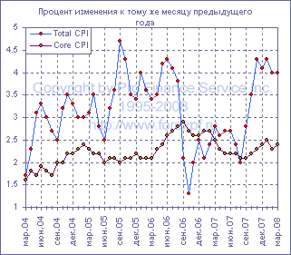 Согласно опубликованному сегодня отчету, темпы роста потребительской инфляции в США в марте этого года составили 0.3% м/м по сравнению с предыдущим месяцем, что оказалось несколько лучше прогнозов аналитиков, рассчитывавших на рост в 0.4% м/м, и в годовом исчислении темпы роста остались на прежнем уровне в 4.0% г/г. Между тем, базовый индекс CPI в марте вырос на 0.2% м/м (+0.152%), что соответствовало ожиданиям, и годовые темпы роста поднялись до 2.4% г/г после 2.3% г/г в феврале. Цены на одежду продемонстрировали максимальное снижение с 1998 года, которое составило 1.3%, кроме того, снизились цены на автомобили (-0.1%). Между тем, цены на услуги местной телефонной связи выросли на 0.5%, цены на продукцию здравоохранения - на 0.4%, а цены на продукты питания прибавили 0.2%. Цены на энергоносители, тем временем, в марте поднялись на 1.9%. Источник: ProFinance.Ru - Новости рынка Форекс