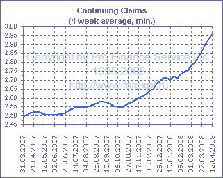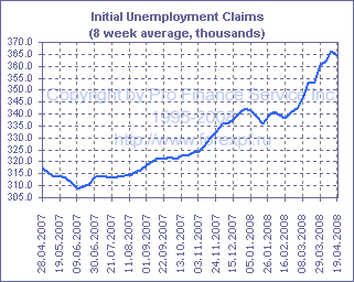 Еженедельный отчет Департамента труда США оказался несколько лучше, чем ожидали аналитики, прогнозировавшие рост заявок на 5 000 до 377 777, поскольку по факту число первичных заявок на получение пособий по безработице в неделю до 19 апреля сократилось на 33 000 и составило 342 000. Между тем, данные за предыдущую неделю были пересмотрены с 372 000 до 375 000, в результате чего на 19 апреля среднее число заявок безработных за последние четыре недели упало на 7 250 с 376 750 до 369 500, тогда как мене волатильное восьминедельное среднее значение составило 364 375 после 366 500 ранее. Общее число лиц, получающих пособия по безработице, тем временем, в неделю до 12 апреля сократилось на 65 000 до 2.934 млн. после 2.999 млн. ранее, однако четырехнедельное среднее значение выросло с 2.939 млн. до 2.960 млн. Источник: ProFinance.Ru - Новости рынка Форекс