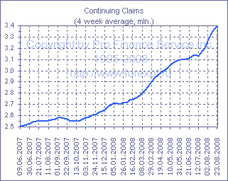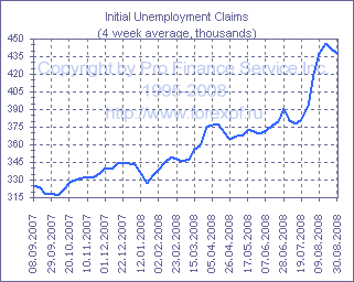 По данным Департамента труда США, число первичных заявок безработных в неделю до 30 августа выросло на 15 000 и составило 444 000, вернувшись к уровню 9 августа после 429 000 (прим. ProFinance.ru: пересмотрено с 425 000) неделей ранее, что оказалось заметно выше прогноза аналитиков, рассчитывавших на 425 000 заявок. Между тем, с учетом пересмотров среднее число заявок за последние четыре недели сократилось с 441 250 до 438 000, тогда как менее волатильное восьминедельное среднее значение продолжило расти и составило 429 125 после 417 125 неделей ранее. Общее число безработных, получающих пособия, тем временем, в неделю до 23 августа составило 3.435 млн., поднявшись с 3.429 млн. неделей ранее, в результате чего четырехнедельное среднее значение показателя составило 3.400 млн. после 3.367 млн. ранее. Источник: ProFinance.Ru - Новости рынка Форекс