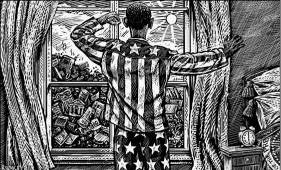 Картинка многозначащая: Наступил рассвет.. Обама глядит в окно (первый день президентства?) - и видит развалины.. и муссорную свалку. "Что делать?" )) 00:18 Medved: Обама избран президентом, все карты в руках. Краткосрочное финансирование имеет позитивные перспективы - достаточно напечатать триллион бумажек. А потом ад.