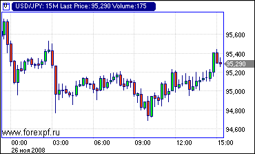 Доллар/иена сумел подняться выше Y95, однако после прорыва выше оферов в области Y95.25/30 быки предпочли зафиксировать прибыль, учитывая сохраняющийся негативный настрой на рынках акций Европы и снижение основных фондовых индексов с коррекционных максимумов. Дилеры отмечают, что влияние на пару также оказывает экспирация опционов со страйками на Y95.00, которая состоится сегодня и завтра, при этом в преддверии праздника в США (прим. ProFinance.ru: День благодарения в четверг) участники рынка не демонстрируют особой активности, однако большее значение по-прежнему имеет динамика рынка акций. Учитывая активный рост последних дней мы можем увидеть более активную фиксацию прибыли на Wall Street, что будет способствовать продолжению снижения доллар/иены. Пара, между тем, в настоящее время держится около Y95.28, ощущая на себе усиление продаж при попытках роста, и дилеры обращают внимание на то, что ниже Y94.70/40 расположены стопы. Источник: ProFinance.Ru - Новости рынка Forex
