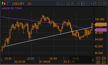 Пара доллар/иена сумела закрыться на прошлой неделе выше 200-дневной скользящей средней и снова оказалась выше удлиненной линии шеи в модели "голова и плечи". По мнению аналитиков RBS, такая динамика говорит о возможности восходящего движения, поэтому в банке ожидают роста доллар/иены к 100.00, 101.00 и 105.00. Пока не пробита поддержка 200-дневной скользящей средней на 96.80, этот прогноз останется в силе. Сейчас пара доллар/иена находится на отметке 98.45. Источник: ProFinance.Ru - Новости рынка Форекс