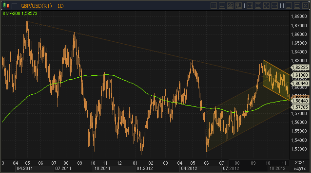 Текущая ситуация, в контексте вышеописанных ожиданий, приобретает дополнительный интерес с точки зрения технической картины в паре фунт/доллар. В понедельник цены протестировали область текущих значений 200-дневной скользящей средней линии, которая выступает в качестве поддержки. Ряд технических экспертов высказывают уверенность в том, что 200-дневная линия не сможет выступить в роли сильного уровня поддержки и будет пробита на текущей неделе, возможно, даже в первой ее половине. Они верят в усиление среднесрочного медвежьего тренда. Источник: ProFinance.Ru - Новости рынка Forex