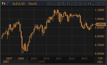 Быки по аусси в последнее время чувствуют себя все уверенней, однако валютные стратеги Goldman Sachs с сомнением смотрят на попытки роста австралийской валюты, отмечая, что они с оглядкой на более масштабную картину носят коррекционный характер. Масштабная вершина в паре остается актуальной, а, учитывая не самое благоприятное развитие событий в азиатском регионе поводов для оптимизма у быков не так уж много. В банке ожидают, что снижение цен на сырье негативно отразиться экономике Австралии, тогда как негативное влияние также окажет сокращение государственных расходов и долгосрочное сокращение инвестиций в горнодобывающей отрасли. В Goldman Sachs полагают, что попытки быков по аусси/доллару перехватить инициативу не принесут успеха, и через год окажется около $0.80. Источник: ProFinance.Ru - Новости рынка Forex