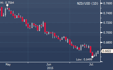 Коррекция новозеландской валюты сегодня получила развитие: киви нашел в себе силы вернуться выше шестьдесят шестой фигуры и в настоящее время пытается закрепить успех. Аналитики Bank of New Zealand отмечают, что в ближайшее время ребалансирование позиций может обеспечить импульс восстановлению новозеландского доллара, но уповать на то, что ситуация для быков значительно улучшиться, не стоит. В банке отмечают значительное ухудшение характера экономической статистики и продолжающийся обвал цен на молоко (прим. Profinance.ru: средняя цена сухого молока на аукционе 15 июля достигла уровня в $1848 за тонну, вплотную приблизившись к минимумам июля 2009 в $1829). В BNZ отмечают, что падение новозеландской валюты оказалось быстрее, чем они ожидали, но потенциал отнюдь не исчерпан. В банке рассчитывают на снижение ставки RBNZ не только в этом месяце (23 июля), но в сентябре и октябре, и прогнозируют снижение NZD/USD к $0.62 к концу года и к $0.60 в первом квартале следующего, чему, по словам аналитиков банка, будет способствовать и начало цикла повышения ставок ФРС. В BNZ отмечают, что, если данные по рынку труда США за июль и август оправдают ожидания, ставка по федеральным фондам может быть повышена уже в сентябре. Источник: ProFinance.Ru - Новости рынка Forex