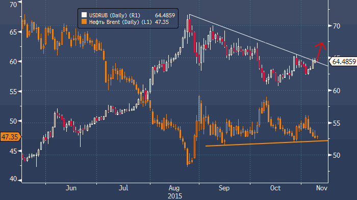 Нефть сегодня не падает, а рубль пытается прибавить в цене к доллару при поддержке национальных экспортеров, которые покупают российскую валюту, готовясь платить ноябрьские налоги. На последний месяц осени приходится порядка 425 млрд. рублей (6.6 млрд. долларов) налоговых выплат. Не стоит заражать себя излишним оптимизмом, поскольку устойчивость рубля сейчас выглядит как являние временное. Стоит ценам на нефть возобновить снижение и рубль уверенно начнет слабеть. А основания для нисходящей динамики нефтяных котировок имеются. Сегодня поздно вечером будут опубликованы еженедельные данные по запасам нефти в США от Американского института нефти (API), которые составляются на добровольной основе и предшествуют выходу официальной еженедельной статистики от Министерства энергетики. Это потенциально медвежий для нефти фактор, который может в очередной раз отразить, что производство не спешит сокращаться. Источник: ProFinance.Ru - Новости рынка Forex
