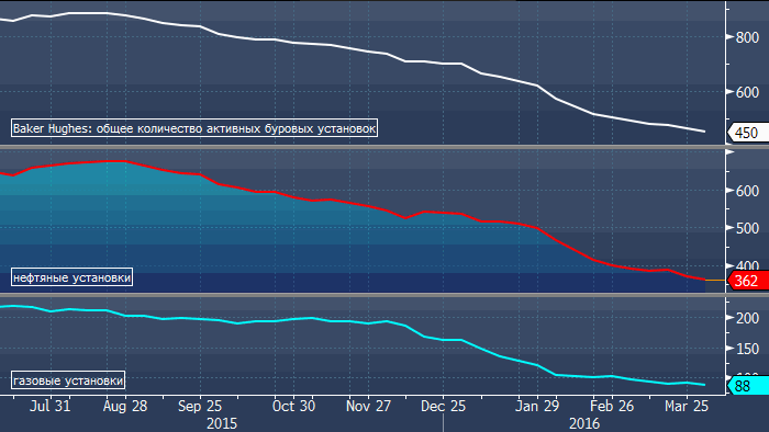 количество активных нефтяных установок за неделю до 1 апреля сократилось на 10 до 362 установок