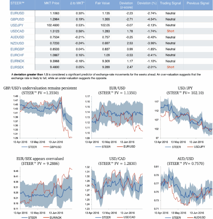 Валютные стратеги BNP Paribas обновили еженедельную оценку ситуации на валютном рынке, в подготовке которой используется квантовая модель «STEER», довольно успешно зарекомендовавшая себя с точки зрения точности своих прогнозов. Напомним, что данный банк является пионером использования данного подхода к оценке «справедливости» текущих валютных курсов. Основу данной методики представляет взаимосвязь между процентными ставками, стоимостью акций и цен на сырьевые товары.