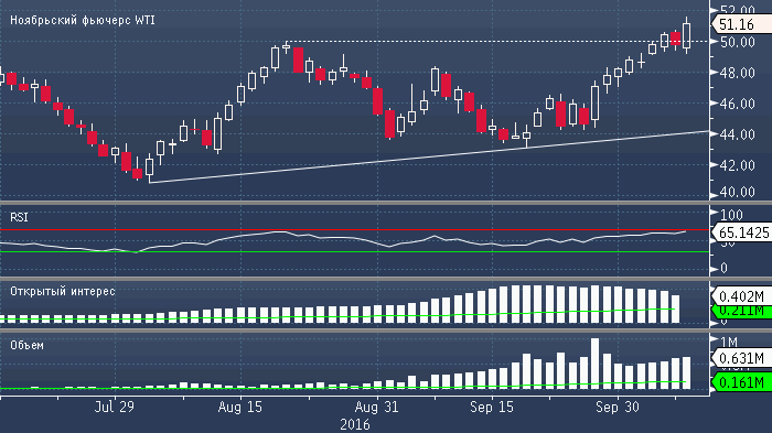 «Учитывая тот факт, что в 2017 году ожидается рост мирового спроса на более чем 1 млн. баррелей в день, а также тот факт, что нетрадиционные производители (прим. ProFinance.ru: эксперт имеет в виду сланцевую отрасль в США) имеют лишь ограниченную способность реагировать на более высокие цены, даже умеренное снижение объем добычи ОПЕК и России от максимумов формирует достаточный потенциал для прорыва ценами на нефть уровня в $60 за баррель в не столь отдаленном будущем», - утверждает Барт Мелек, глава глобальной стратегии товарных рынков из TD Securities.