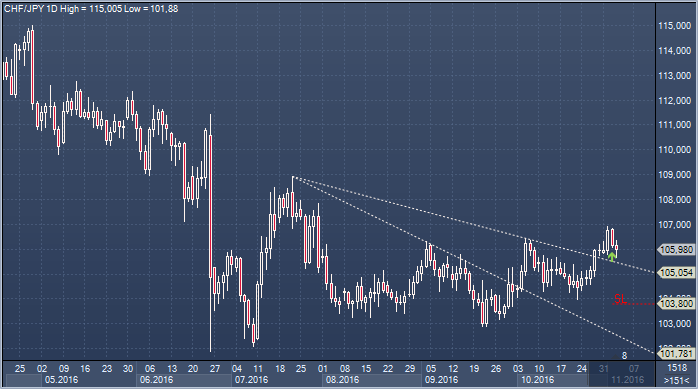 Франк/иена. Покупка 2 ноября от 106.18, цель не определена, стоп 103.80.