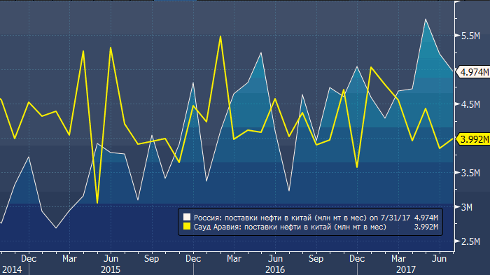 Сегодня таможня Поднебесной опубликовала свежую статистику, из которой следует, что в июле Россия вновь стала крупнейшим поставщиком нефти в страну, причем произошло это пятый месяц подряд (рекорд с 2004 года, когда начала вестись подобная статистика). По мнению экспертов, Саудовская Аравия вряд ли серьезно обеспокоена этим фактом, так как сумела закрепить за собой уверенное второе место в списке крупнейших поставщиков нефти в Китай. Скорее ее больше беспокоит активность Ирака, объем поставок нефти которого на рынок Поднебесной вырос в июне и июле на 57% и 6.1% соответственно. Подготовлено ForexPF.ru по материалам агентства Bloomberg Источник: ProFinance.Ru - Новости рынка Форекс