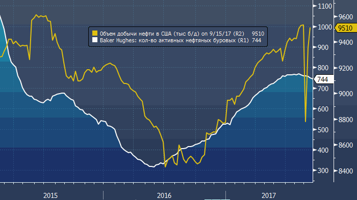 Котировки нефти полностью проигнорировали данные Baker Hughes о том, что за прошедшую неделю количество активных буровых в США сократилось шестой раз подряд (на этот раз на 5 штук) и теперь находится в области трехмесячных минимумов. Эксперты агентства Bloomberg отмечают, что сланцевый король и глава Continental Resources Гарольд Хэмм, возможно, прав, утверждая, что американские нефтяники более осторожны, нежели о них думает Минэнерго США в своих прогнозах по добыче.