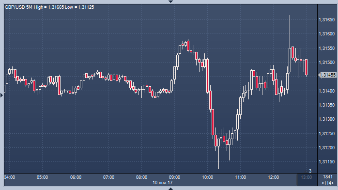 GBP/USD вырос на 0.2% до максимума 1.3168 после того, как были опубликованы данные по производству в Великобритании, оказавшиеся выше прогноза. Сопротивление расположено на 1.3180, где проходит 21-дневное скользящее среднее значение (DMA), и на 1.3216, в районе 55-DMA. Поддержка расположена на 1.3085, минимуме четверга; сильная поддержка: ~ 1.3030, дневная линия тренда с 6 сентября. Промышленное производство в Великобритании в сентябре выросло на 0.7% по сравнению с августом, а в годовом выражении - на 2.5%. Аналитики ожидали роста в месячном выражении на 0.3%, а в годовом - на 1.9%.