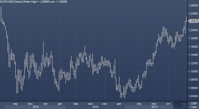 Единая валюта может подешеветь в преддверии намеченного на следующую неделю заседания ЕЦБ, на котором регулятор, вероятно, выскажет озабоченность чрезмерно быстрым ростом ее курса. «Подобная озабоченность может быть отражена либо в тексте сопроводительного заявления, либо высказана Марио Драги на последующей пресс-конференции», - пишут эксперты банка. - «По рынку ходят слухи о желании ЕЦБ как можно быстрее свернуть программу QE и нормализовать ставки. Первый пункт такой программы выглядит правдоподобным, но это совсем не означает, что сразу за его выполнением последует повышения ставок.