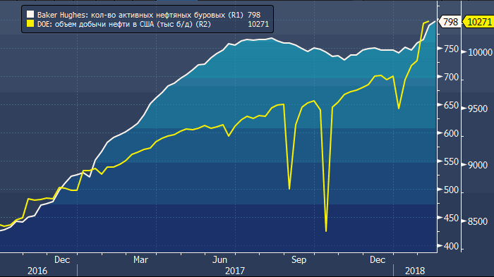 Рынок проигнорировал новости от том, что за прошедшую неделю количество активных нефтяных буровых в США выросло на 7 штук до 798, и котировки нефти продолжили консолидацию в области максимумов сессии. Вероятно, это можно интерпретировать в качестве бычьего сигнала о том, что никто пока не хочет продавать.