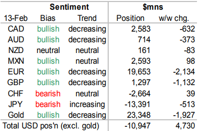 Впервые в этом году снизился чистый лонг по луни (-$0.6 млрд до $2.6 млрд), и вторую неделю подряд сократился открытый интерес, что говорит о неуверенности спекулянтов относительно дальнейшей динамики канадской валюты.