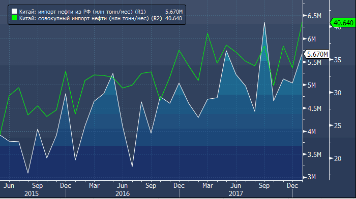 - совокупный импорт сырой нефти: 40.64 млн тонн (+19.6% г/г);