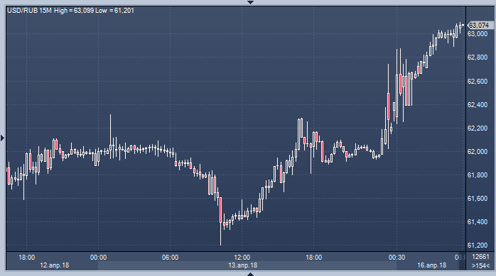 Понедельник начинается для российской валюты из неприятных новостей. США, Великобритания и Франция нанесли ракетный удар по Сирии ранним утром в субботу 14 апреля. Однако куда более неприятным событием стали сообщения о том, что США намерены в понедельник объявить о новых санкциях в отношении ряда российских компаний.