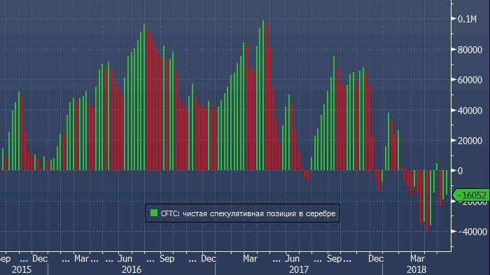 Согласно последним данным американской Комиссии по торговле товарными фьючерсами (CFTC), за неделю до 15 мая спекулянты сократили чистую короткую позицию во фьючерсах и опционах на серебро на 3 354 контракта до 16 052 контрактов (3-недельный минимум).