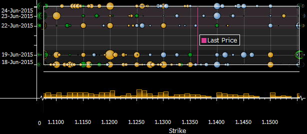 | Как пользоваться графической информацией, представленной ниже? На графиках в виде кругов, размер которых зависит от объема, представлены страйки опционов (по оси Х), сроком истечения которых наступает в указанную дату (ось Y). В целях наглядности графически обозначены лишь те опционные контракты, объем которых выше 20 млн. Голубой цвет — Call. Зеленый цвет — Put. Желтый цвет — Mixed C/P. Источник данных: Депозитарная Трастовая и Клиринговая Корпорация (DTCC). Просьба свои замечания и пожелания относительно формата и содержания предоставляемой на сайте аналитической информации направлять по адресу: analytics@forexpf.ru |