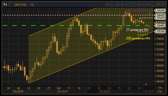 Поддержка 3: $1.5609 - часовая поддержка 16 июня, 21-дневное скользящее среднее значение