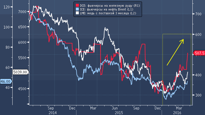 Сырьевые товары в этом году демонстрируют позитивную динамику, давая основания для активных разговоров о том, что худшее уже позади. По мнению экспертов Societe Generale к наблюдаемой сейчас позитивной динамике следует относиться с осторожностью. Так многие эксперты ждут падения цен на нефть до 30 долларов за баррель. А компания BHP Billiton предупреждает, что предложение на рынке железной руды продолжает расти и текущая коррекция является временной и скоро закончится.