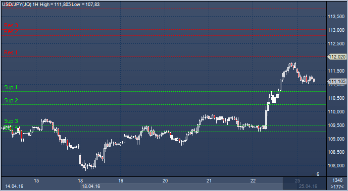 Поддержка 1: Y110.74 - часовое сопротивление 22 апреля, в настоящее время поддержка