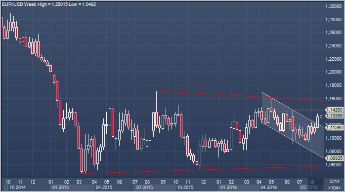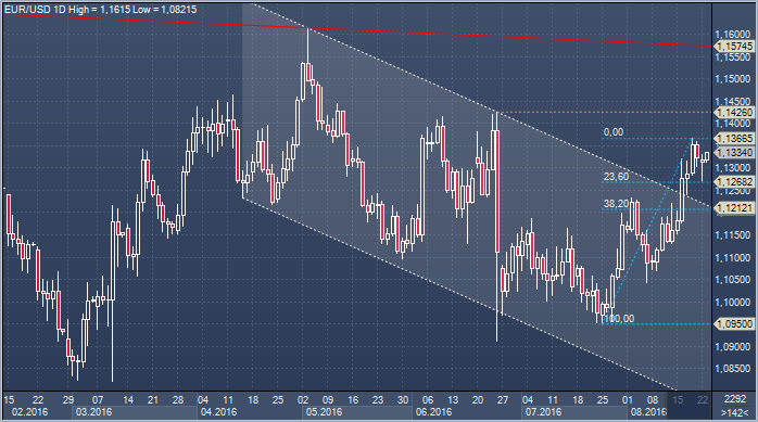 Фиксация прибыли перед выходными не смогла омрачить ралли евро/доллара на прошлой неделе, при этом стоит обратить внимание на то, что коррекция оказалась ограничена поддержкой Фибоначчи в 23.6% от движения с минимумов 25 июля, а пара закрепилась над пробитой верхней границей нисходящего канала. Путь выше вряд ли будет легок, но развитие событий позволяет ожидать от быков новых попыток развить наступление в направлении максимума 24 июня около 1.1426, тогда как основной целью остается верхняя граница диапазона последних месяцев вблизи 1.1574. В настоящее время евро/доллар торгуется около 1.1335, крупные офера остаются в районе 1.1370/80, но выше, по слухам, ожидаются стопы. Источник: ProFinance.Ru - Новости рынка Forex