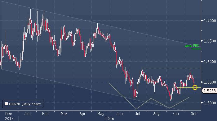 В соответствии с рекомендациями, опубликованными 19 сентября, валютные стратеги RBS вошли в долгосрочную покупку евро против новозеландского доллара. По этой позиции была довольно амбициозная цель — порядка 950 пунктов. Затем в рекомендациях от 6 октября банк перенес стоп приказ в точку безубыточности (на уровень окрытия). К сожалению для стратегов RBS, сегодня эта позиция была закрыта по стопу
