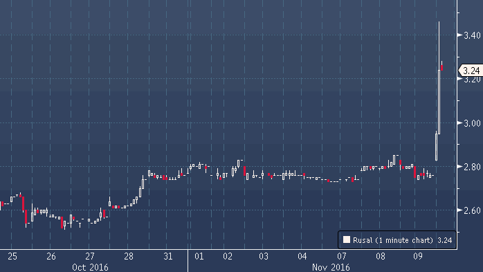 Акции Русала подскочили в цене более чем на 25.4% при объеме на 66% выше трехмесячного среднего значения в ходе торгов в Гонконге на фоне ожиданий хорошей финансовой отчетности и новостей о том, что совет директоров сегодня проведет заседание. Источник: ProFinance.Ru - Новости рынка Форекс