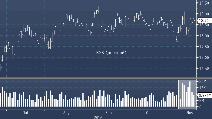 Похоже, инвесторы всерьез поверили в то, что победа Дональда Трампа на выборах президента США сулит скорое снятие или как минимум смягчение введенных против России международных санкций. По крайне мере это следует из данных Bloomberg, в соответствии с которыми в среду был зафиксирован рекордный с марта приток средств в крупнейший ETF, ориентированный на акции российских компаний VanEck Vectors Russia ((NYSE: RSX) +$23.16 млн). По мнению экспертов БКС, покупка паев этого ETF - «быстрый и простой способ разыграть эту карту». В то же время в этот день большинство ETF, ориентированных на развивающиеся рынки, зафиксировали чистый отток капитала, который по совокупности составил $237.7 млн. Источник: ProFinance.Ru - Новости рынка Форекс