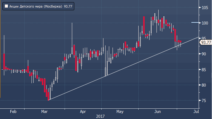 Credit Suisse понизил Детский мир до "нейтрального" уровня; цель 100 рублей за акцию