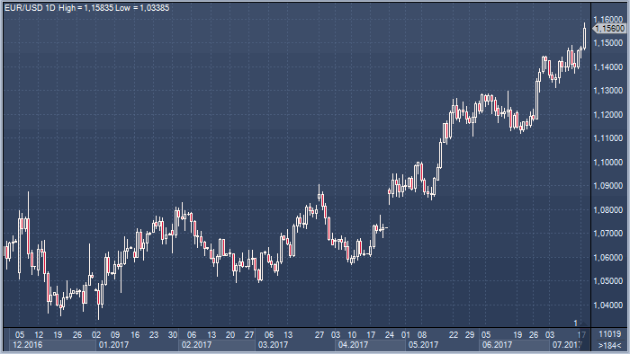 Курс евро по отношению к доллару на азиатских торгах во вторник уверенно поднялся выше 1.1500 и в течение торгового дня достигал максимумов в области 1.1580. Причиной этого движения является слабость американской валюты после сообщения со стороны лидера большинства в республиканском Сенате Митча Макконела, который заявил, что реформа здравоохранения в ее нынешней форме фактически остается мертвой.