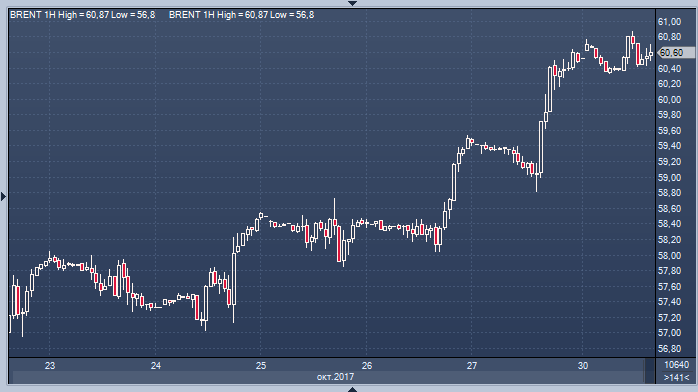 Информация о добыче нефти в ОПЕК, которая выйдет на этой неделе, может подтолкнуть цены на нефть еще выше, поскольку, скорее всего, покажет, что в октябре уровень соблюдения соглашения также был максимальным. Свою роль в этом также, возможно, сыграл Ирак, учитывая конфликт с курдами и падение производства сырья на севере страны. Тот факт, что сокращение не было результатом добровольных усилий, не будет иметь большого значения для текущей ситуации на рынке. Источник: ProFinance.Ru - Новости рынка Форекс